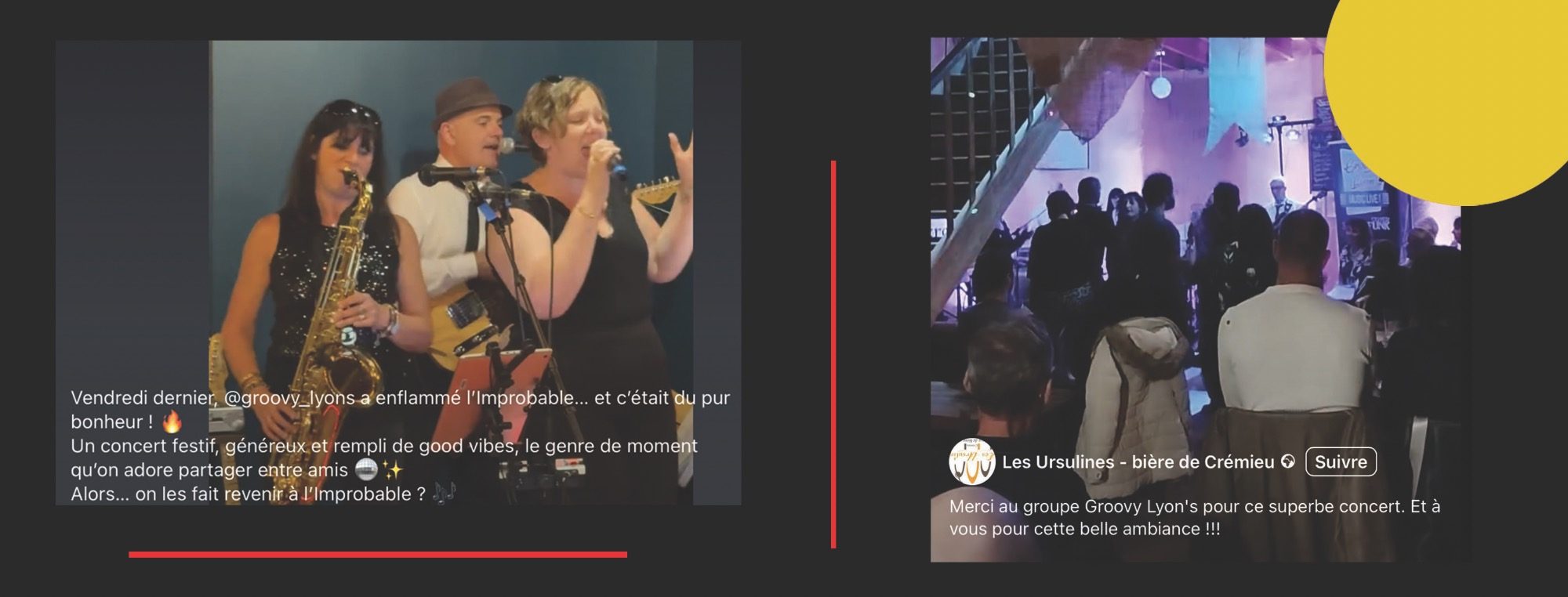 Amplifié, 5 musiciens, 1set de 1h à 2h30.
