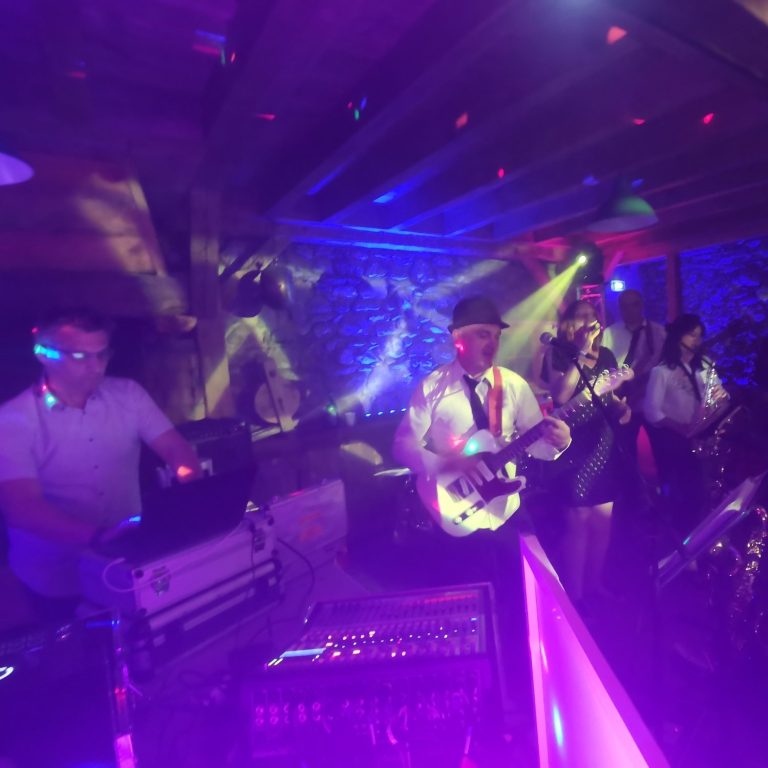 Format 1 : Amplifié, 5 musiciens, 2 sets (1 calme/1 festif) 2h30, autonome son/lumière